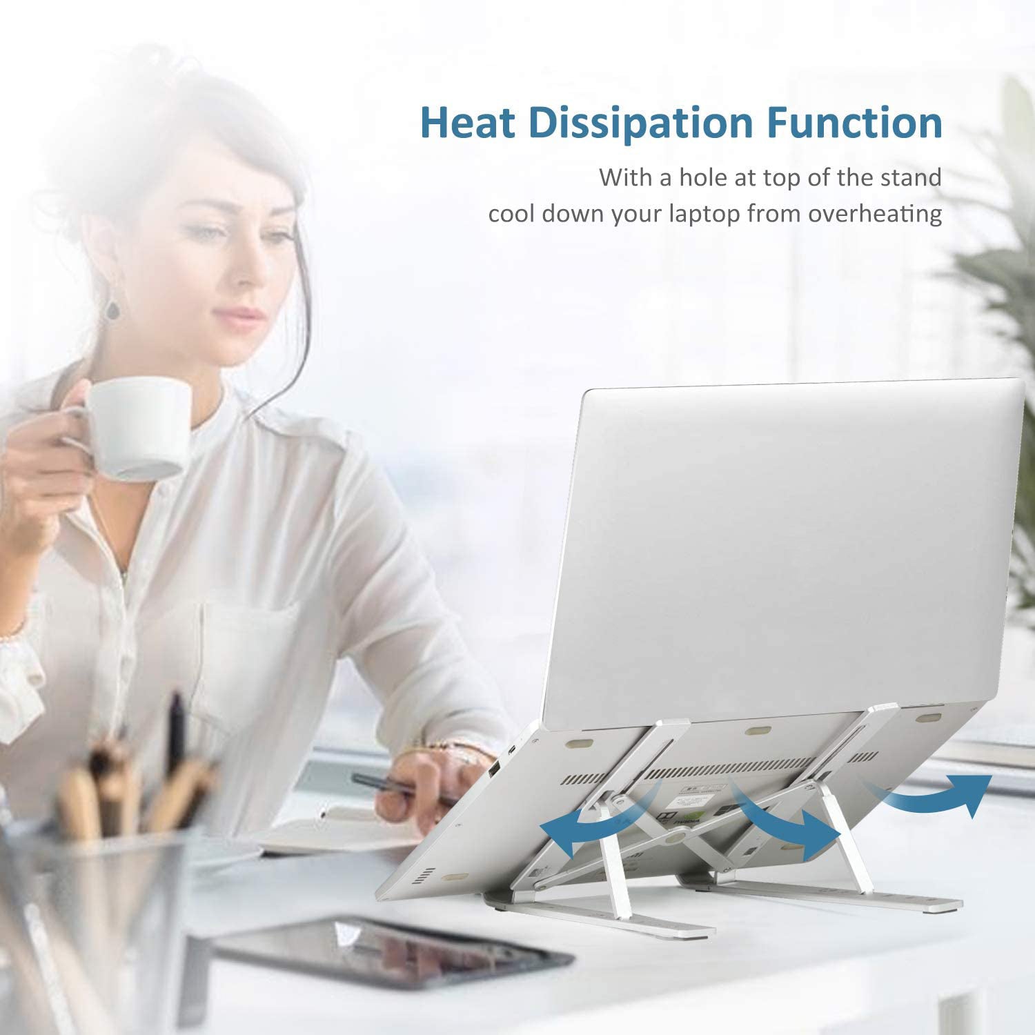 - MULTI-ANGLE ADJUSTABLE DESIGN: The laptop & tablet stand provides 6-speed adjustable height, adjust to comfortable operating angle and height based on your actual need. And the ergonomic design makes for easy watching and typing, relieving neck, shoulder and spinal pain.